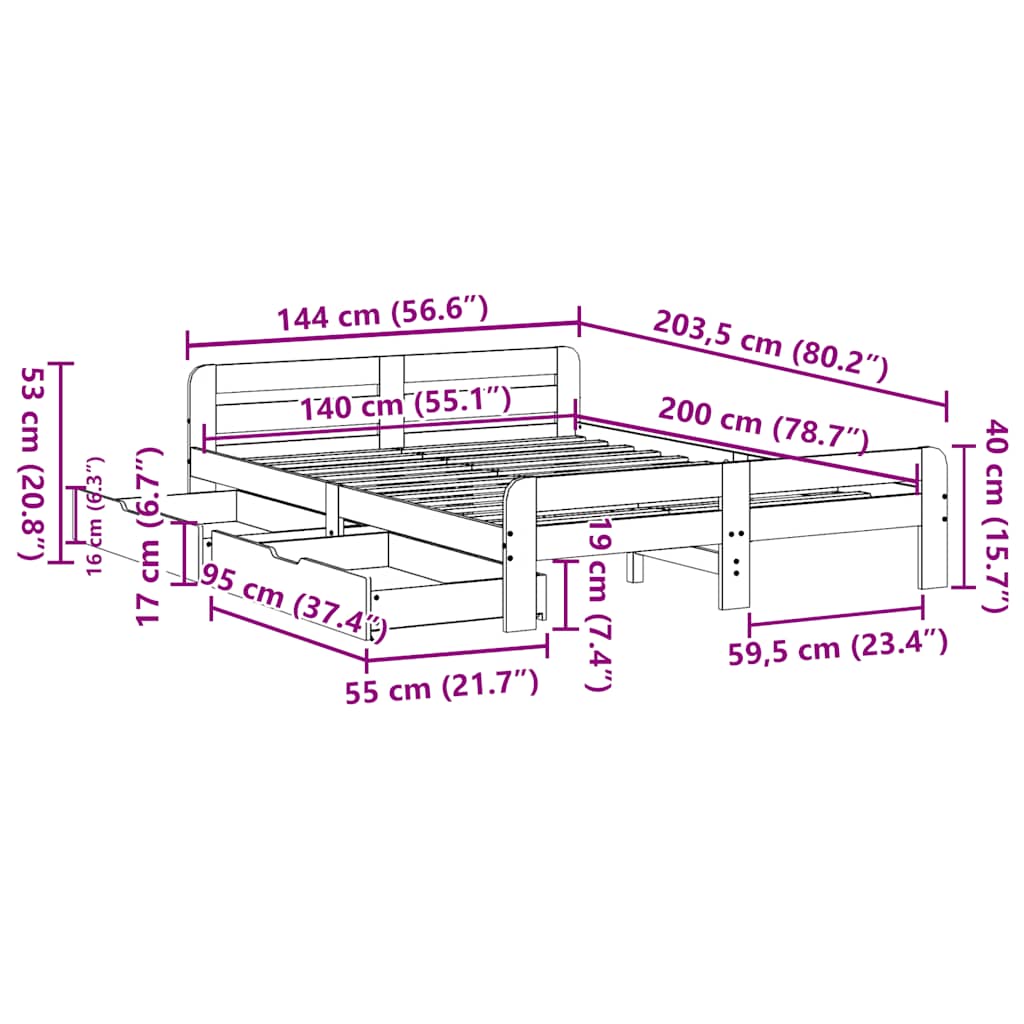 - Dimensioni materasso adatto: 140 x 200 cm (P x L) (materasso non incluso)