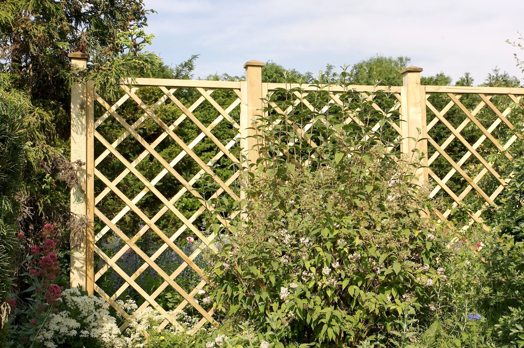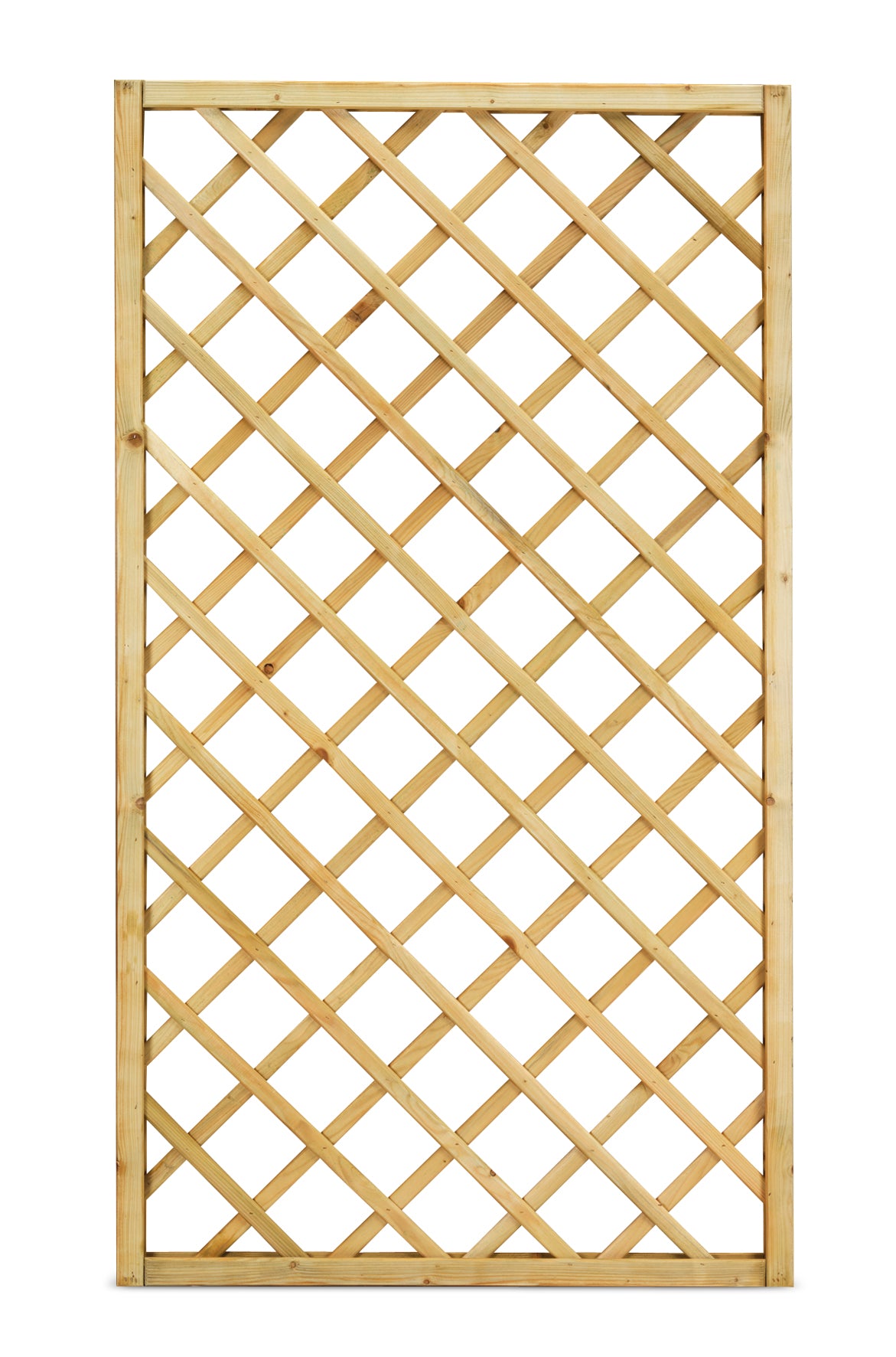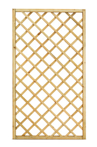 Legno di conifera impregnato in autoclave; Listelli sovrapposti di sezione 1,2x3 cm fissati con graffe e viti, cornice di sezione 4,5x4,5 cm con tenone, maglia 11x11cm