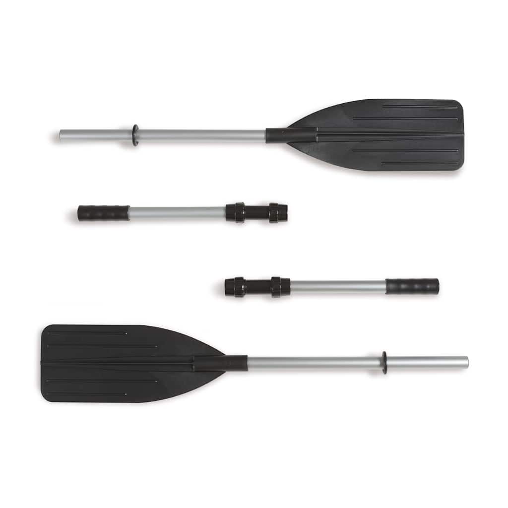 - La consegna include un gommone gonfiabile, due pagaie in alluminio, una pompa, un kit di riparazione e una borsa per il trasporto.