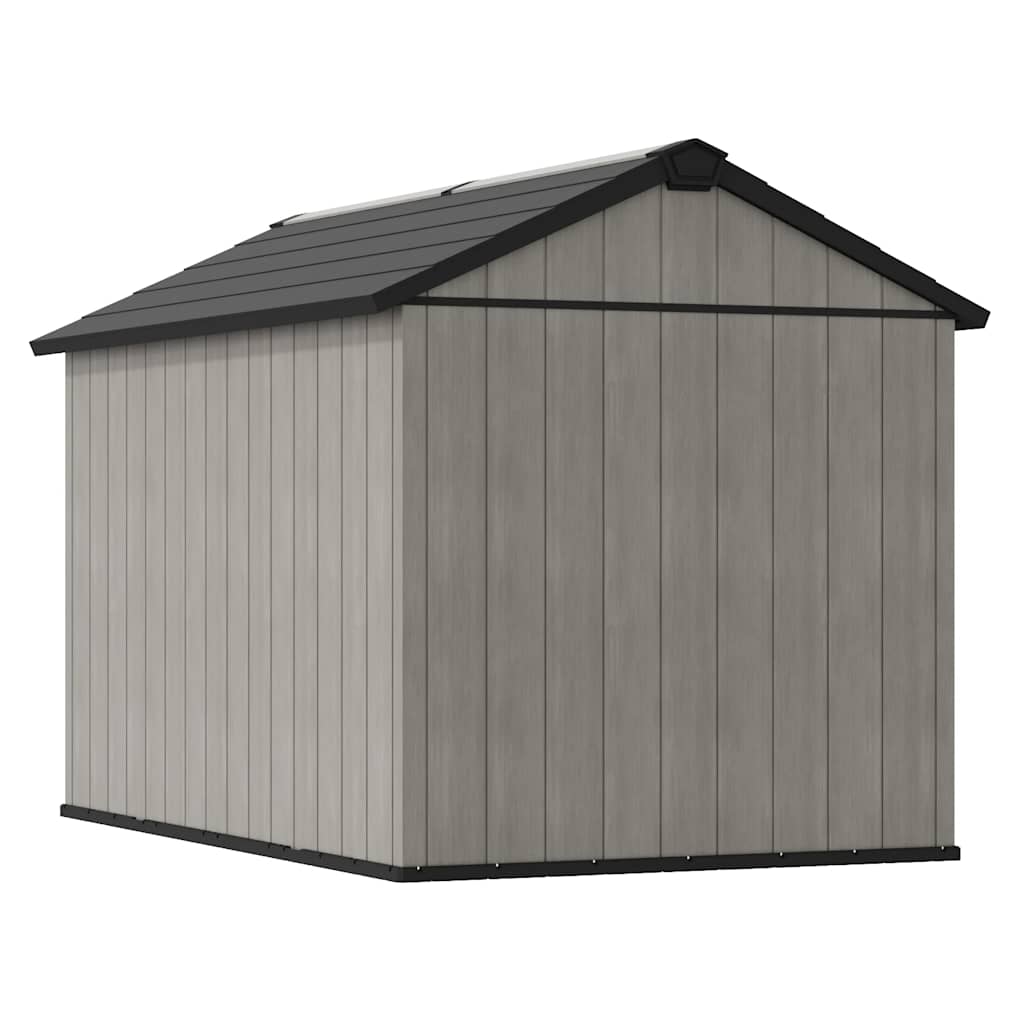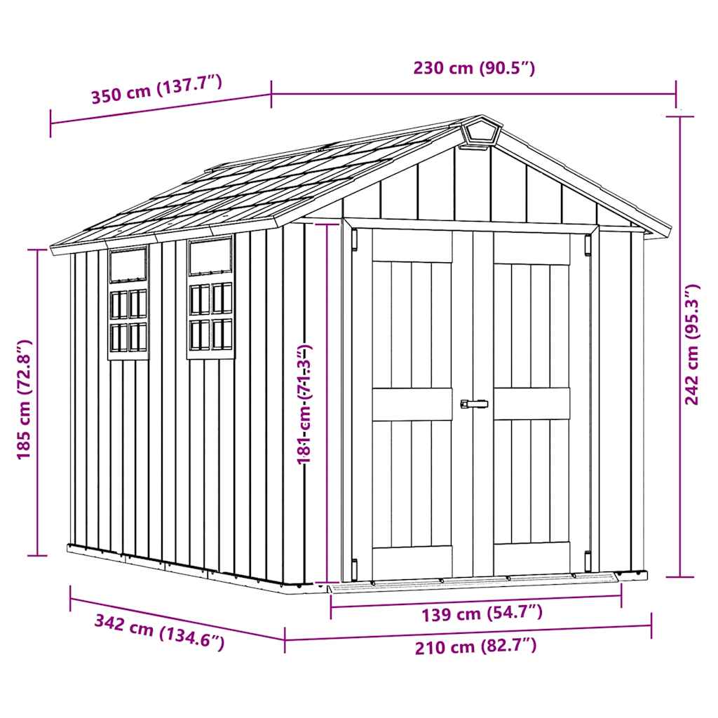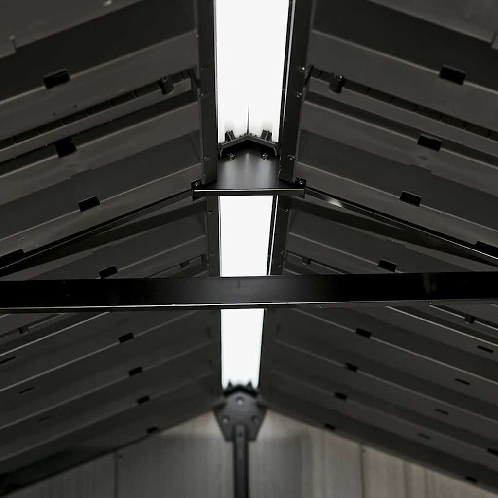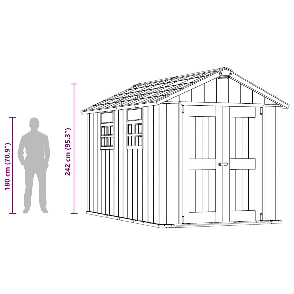 Grazie alla spessa struttura a doppia parete con rinforzi in acciaio, questo capannone di alta qualità è molto resistente. Questo robusto capanno dispone di un pavimento resistente. Le doppie porte possono essere chiuse facilmente e il sistema di chiusura in acciaio inossidabile fornisce una maggiore sicurezza (serratura non inclusa). Il capannone ha un lucernario e finestre in stile vittoriano per far entrare più luce naturale.