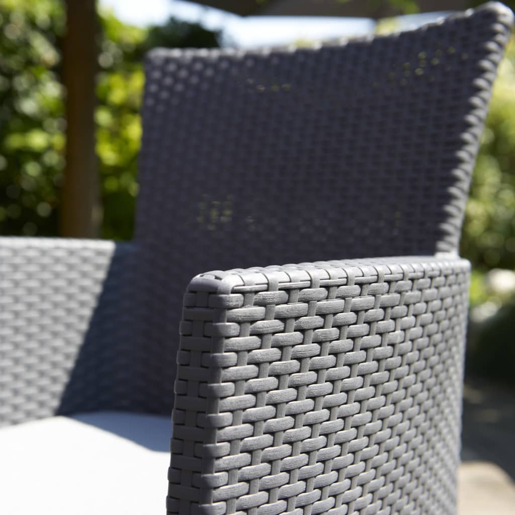 Con questo lussuoso set di mobili da giardino composto da 2 sedie da giardino Iowa della Keter e un tavolo coordinato potete godervi lunghi pomeriggi e serate estive nel vostro giardino, sul balcone o sulla terrazza.