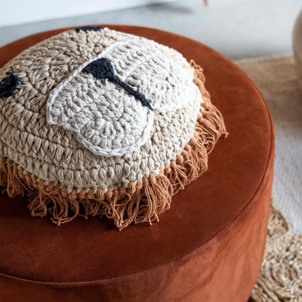 Il cuscino per sedia è stato realizzato all'uncinetto a forma di un grazioso leone, per aggiungere un tocco simpatico a qualsiasi camera. È inoltre realizzato con materiali eccellenti, confortevoli e morbidi al tatto. Potete posizionare questo cuscino per bambini sul letto o sulla sedia a dondolo dei vostri bambini.