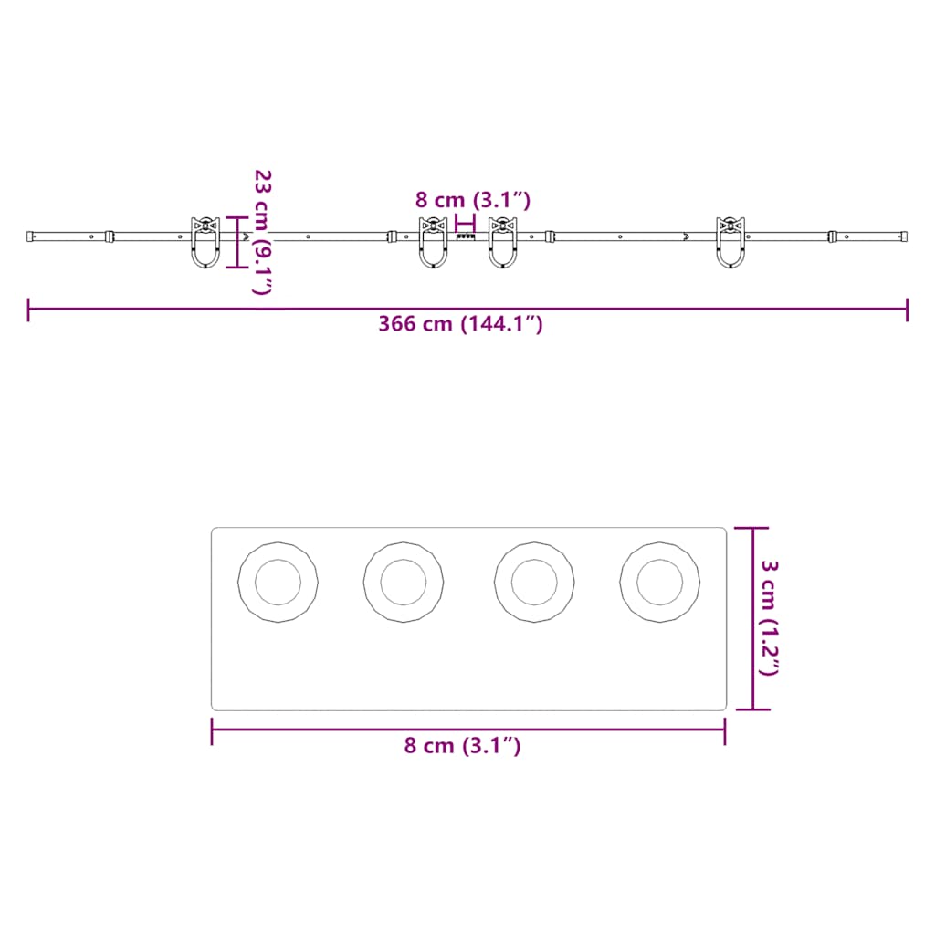 Kit di Binari per Porte Scorrevoli 366 cm Acciaio Nero 3295793