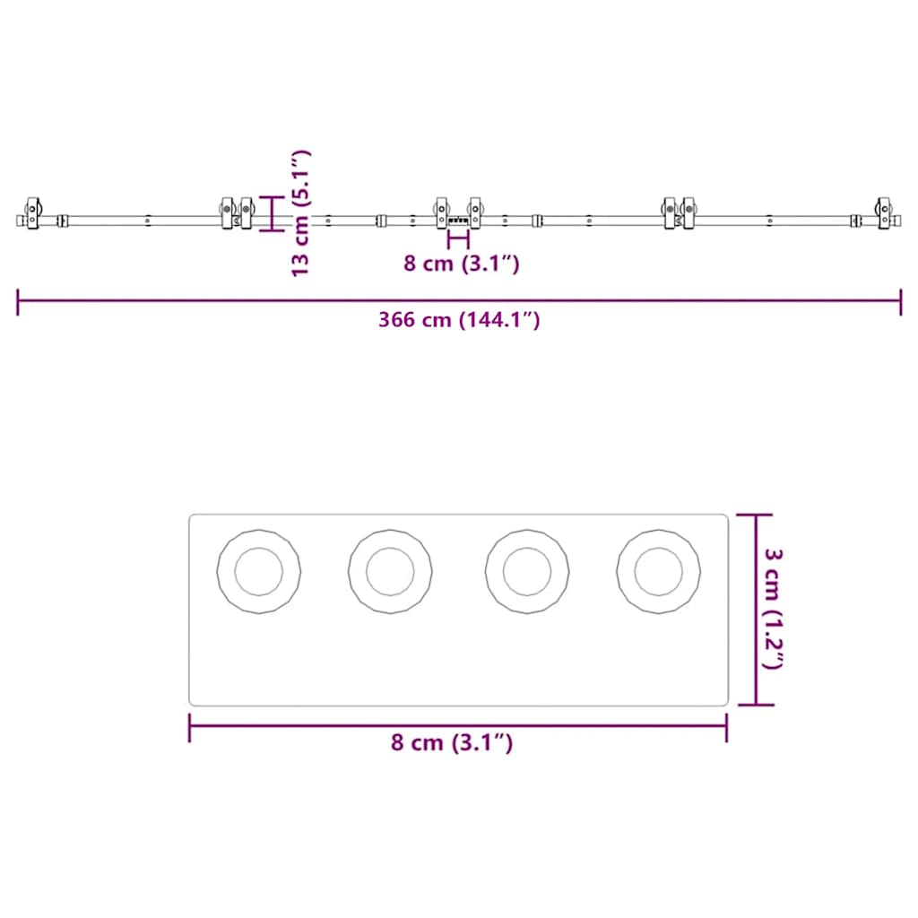 Kit di Binari per Porte Scorrevoli 366 cm Acciaio Nero 3295801