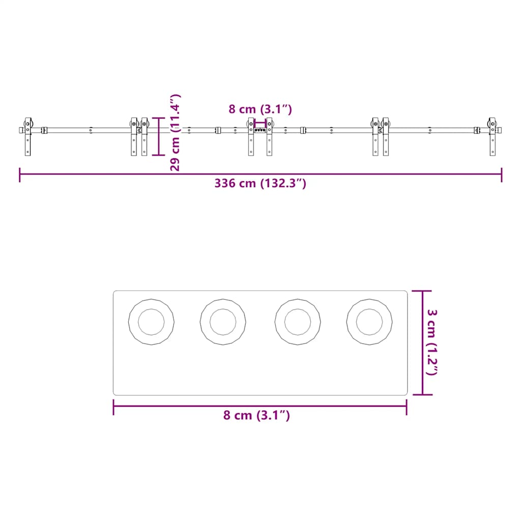 Kit di Binari per Porte Scorrevoli 366 cm Acciaio Nero 3295803