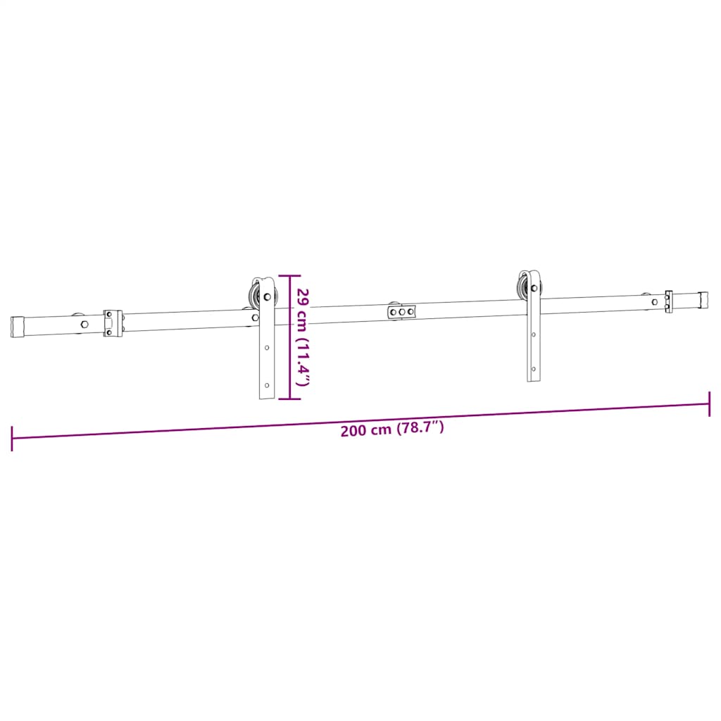 Kit di Binari per Porte Scorrevoli 200 cm Acciaio Nero 4009749