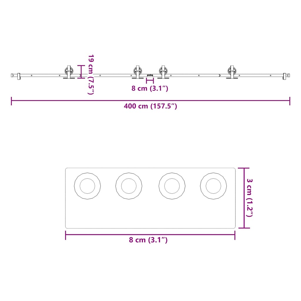 Kit di Binari per Porte Scorrevoli 400 cm Acciaio Nero 3295800