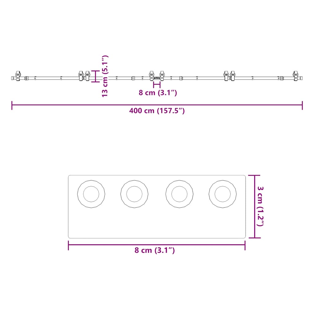 Kit di Binari per Porte Scorrevoli 400 cm Acciaio Nero 3295802