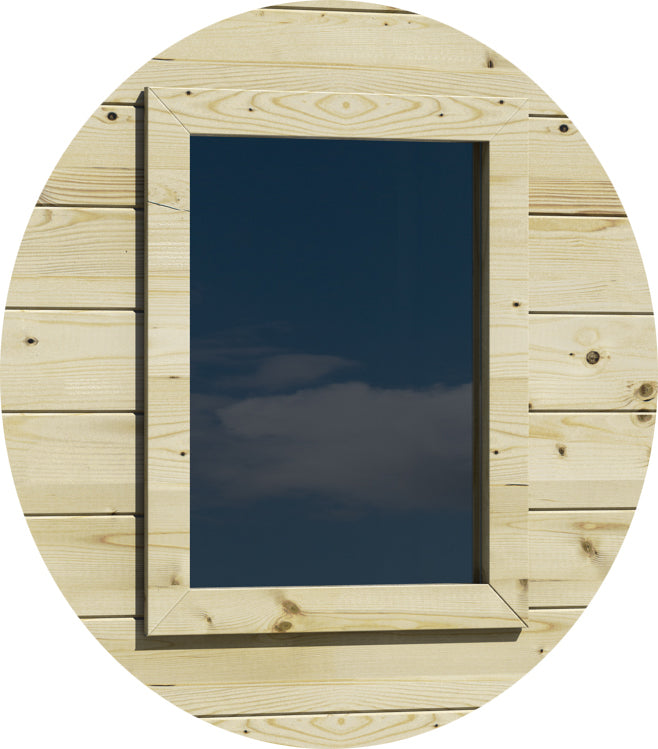 Serramento in abete massello naturale completo con finestra fissa in plexiglass