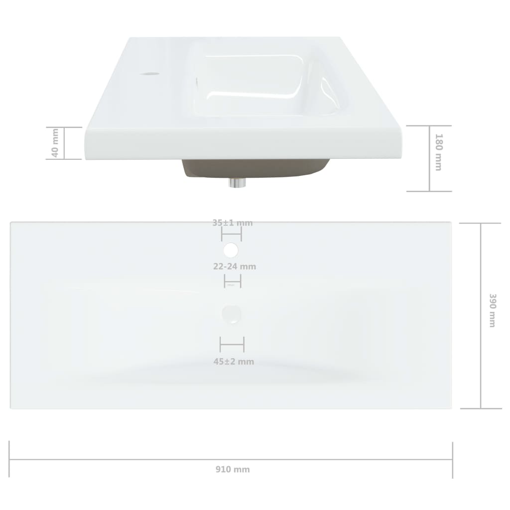 Lavabo da Incasso con Rubinetto 91x39x18 cm in Ceramica Bianco 148626