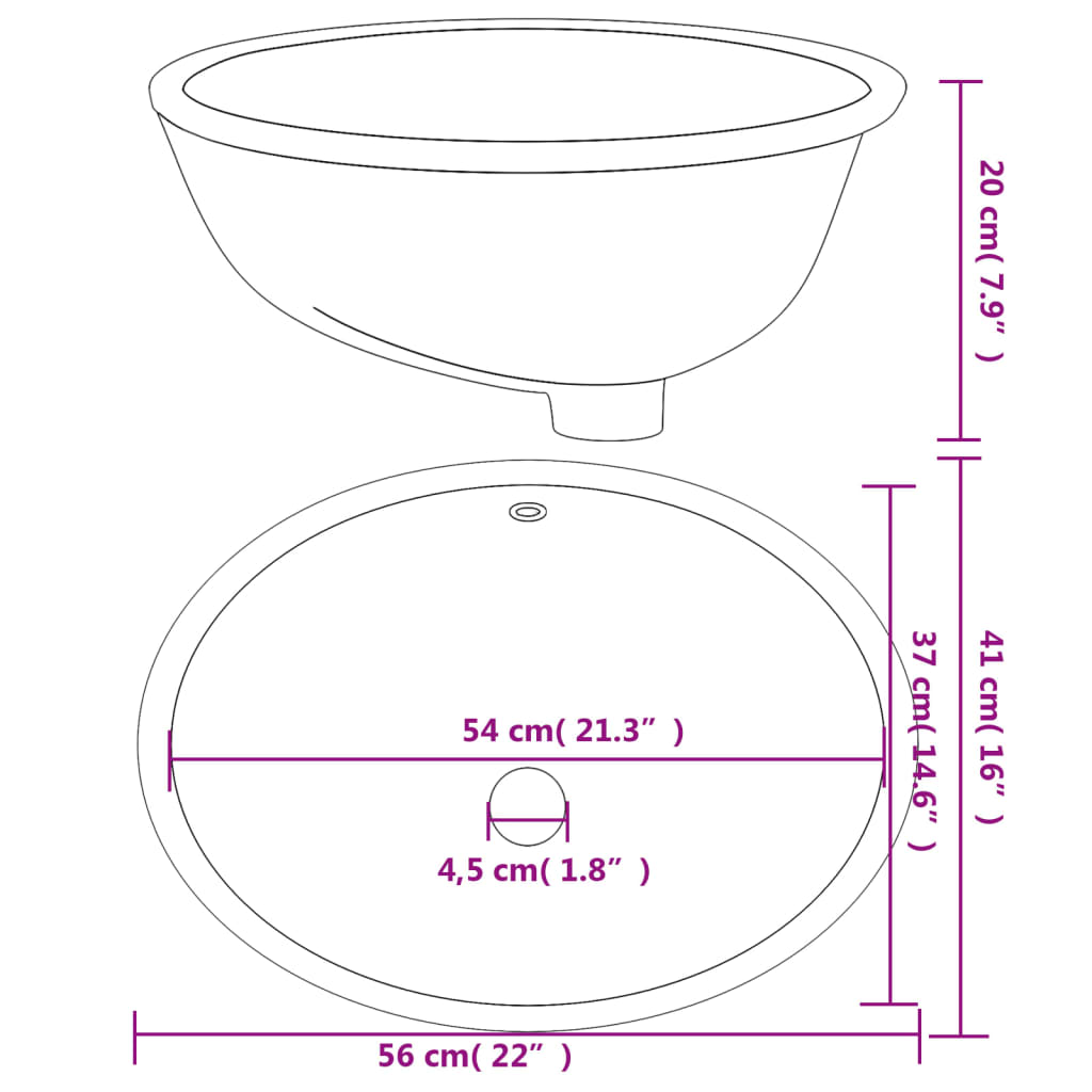Lavandino da Bagno Bianco 56x41x20 cm Ovale in Ceramica 153721