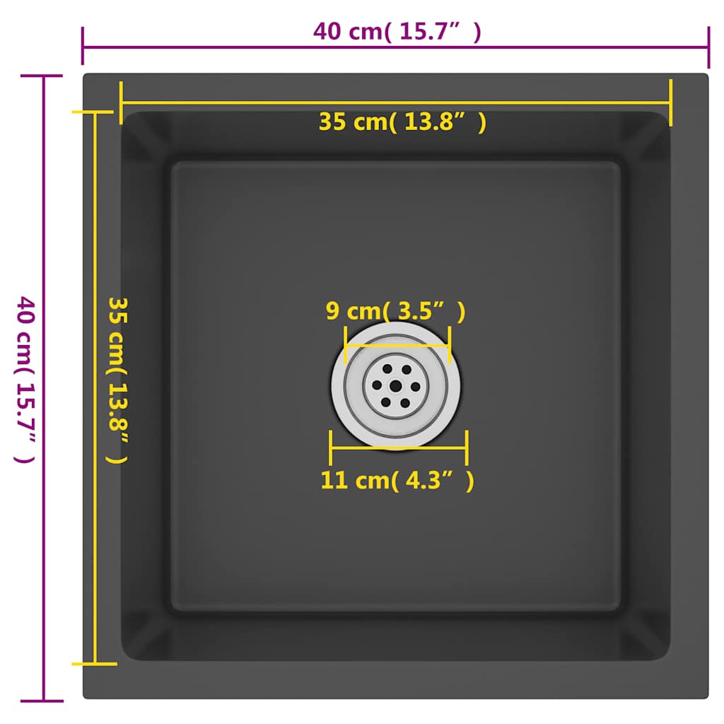 Lavello da Cucina Artigianale Nero in Acciaio Inox 51501