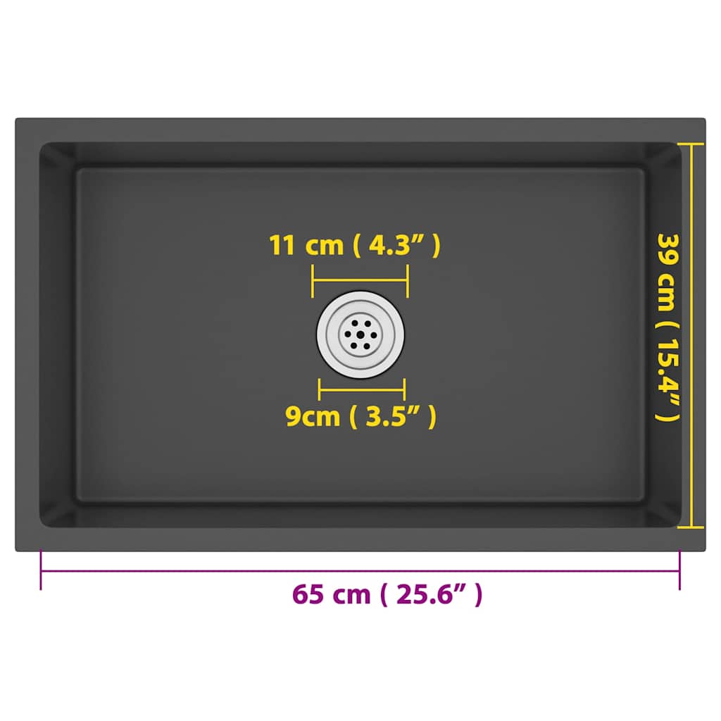 Lavello da Cucina Artigianale Nero in Acciaio Inox 51517