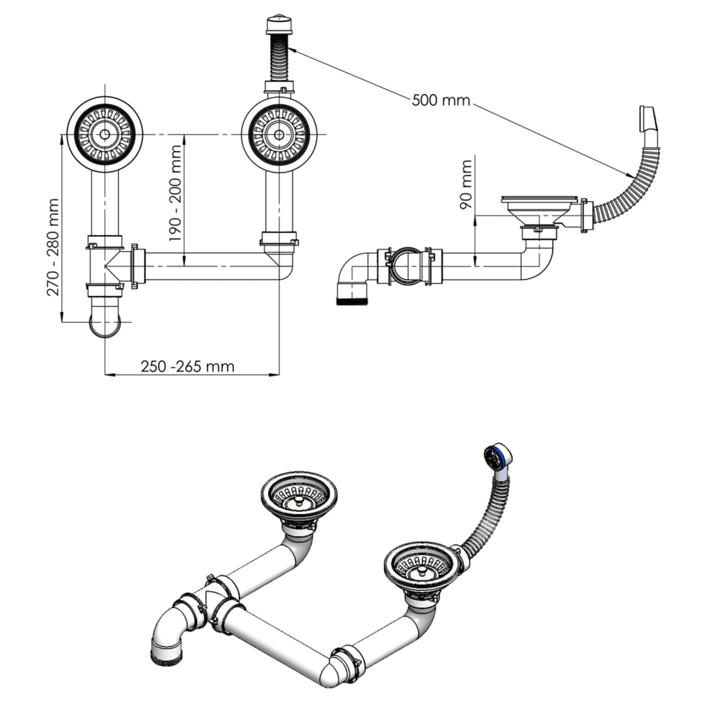- Dimensioni vaschetta piccola: 162 x 305 x 100 mm (L x P x A)