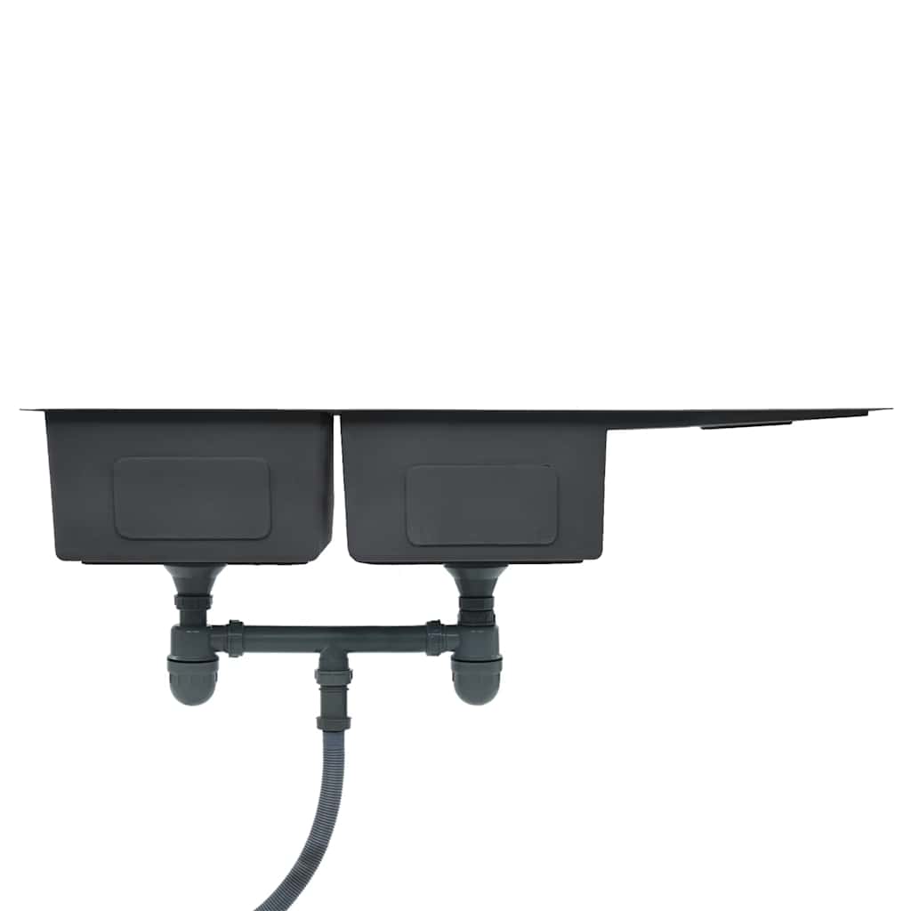 Combinando il meglio in termini di funzionalità e design, questo lavello a due vasche è realizzato in acciaio inossidabile lavorato a mano di alta qualità con vernice anticondensa, antimuffa, senza piombo e resistente alla corrosione. È insonorizzante, con pad di riduzione del suono. Lo sgocciolatoio tornerà molto utile non solo quando si lavano i piatti a mano, ma anche come spazio extra per tagliare le verdure. Inoltre, la vasca con un esclusivo design a X-flume facilita il flusso rapido, prevenendo l'acqua stagnante sul fondo della vasca.