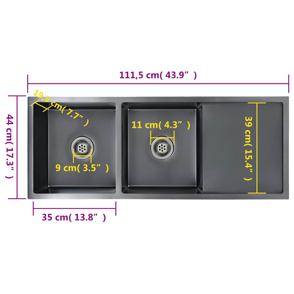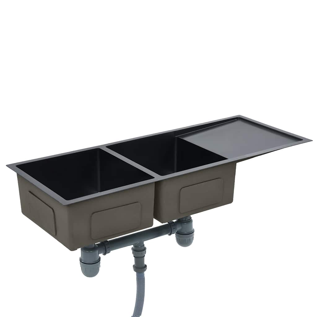 Lavello da Cucina Lavorato a Mano Nero in Acciaio Inox 145087