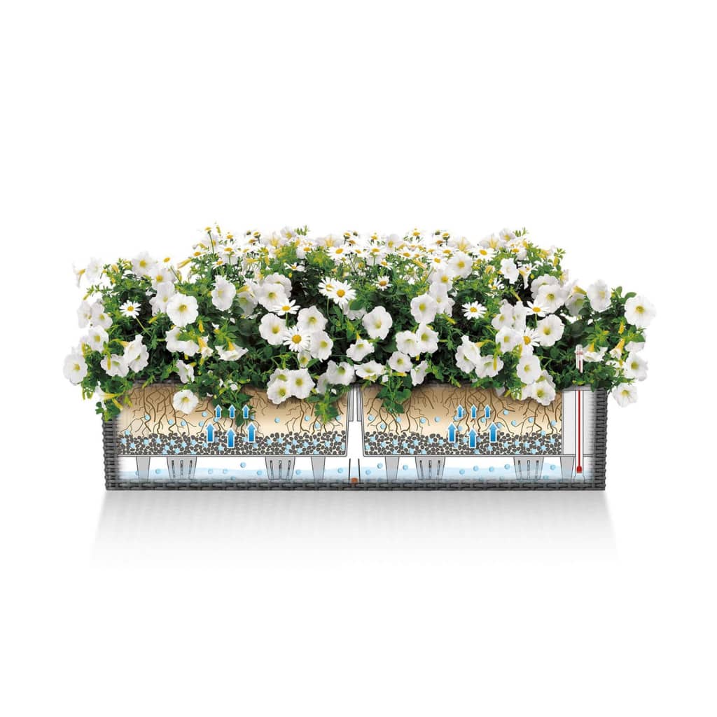 La fioriera della linea BALCONERA Cottage 80 ALL-IN-ONE della LECHUZA rende i balconi da sogno realtà. Si armonizza perfettamente con le piante verdi. Fissate la fioriera della linea BALCONERA alle ringhiere o alle pareti e collocate i rivestimenti all'interno della fioriera. Ecco fatto!