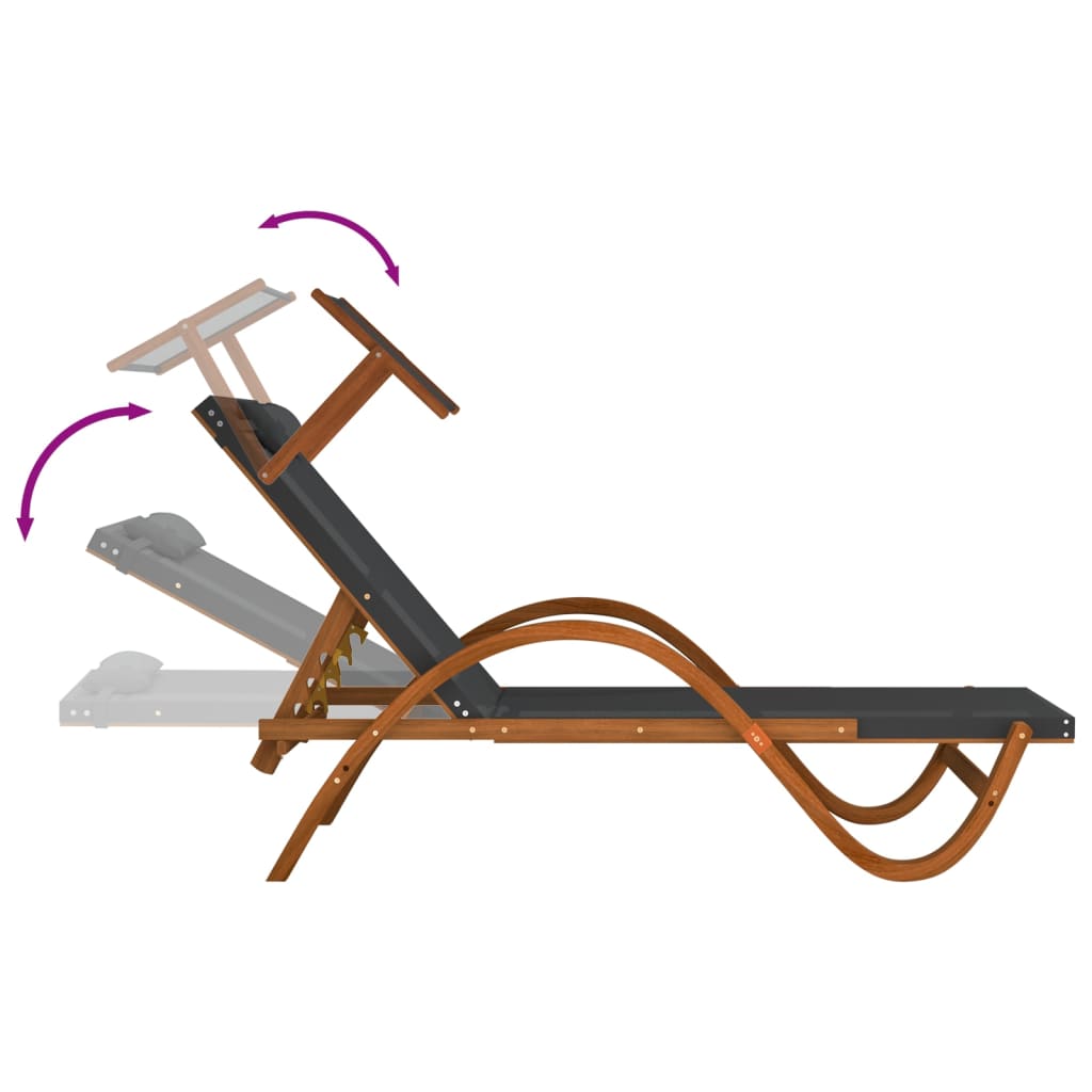 Lettino con Tettuccio Grigio Textilene e Legno Massello Pioppo 363478