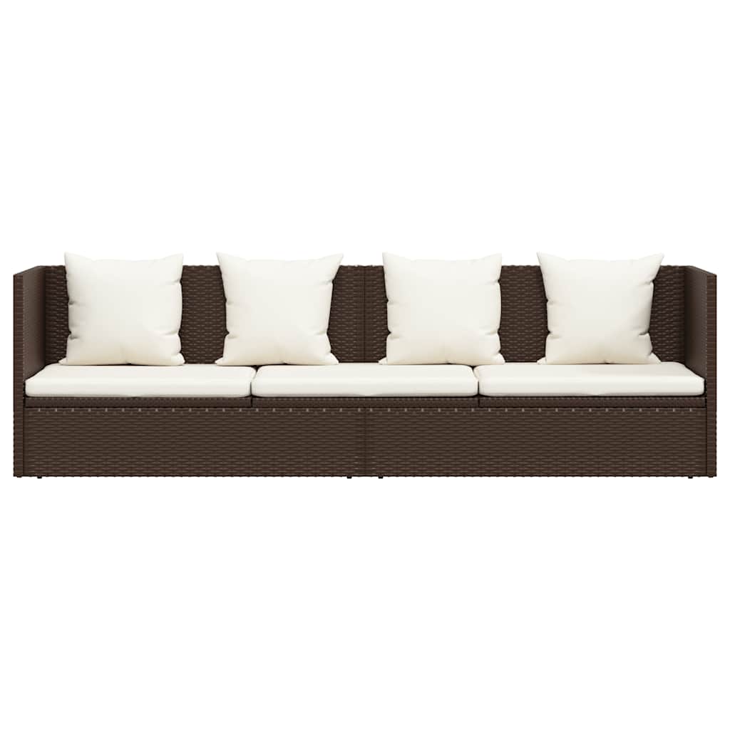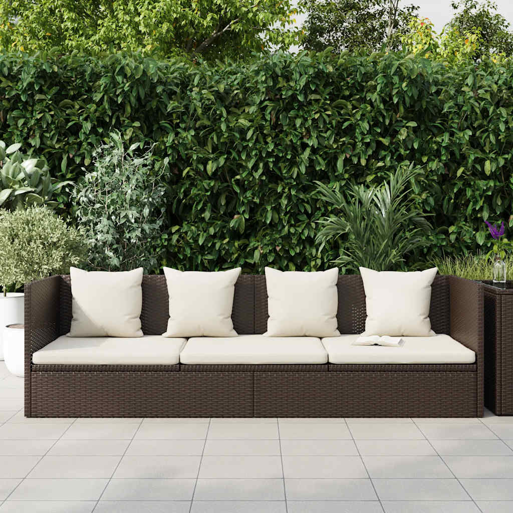 Lettino da Giardino con Cuscini in Polyrattan Marrone 49392