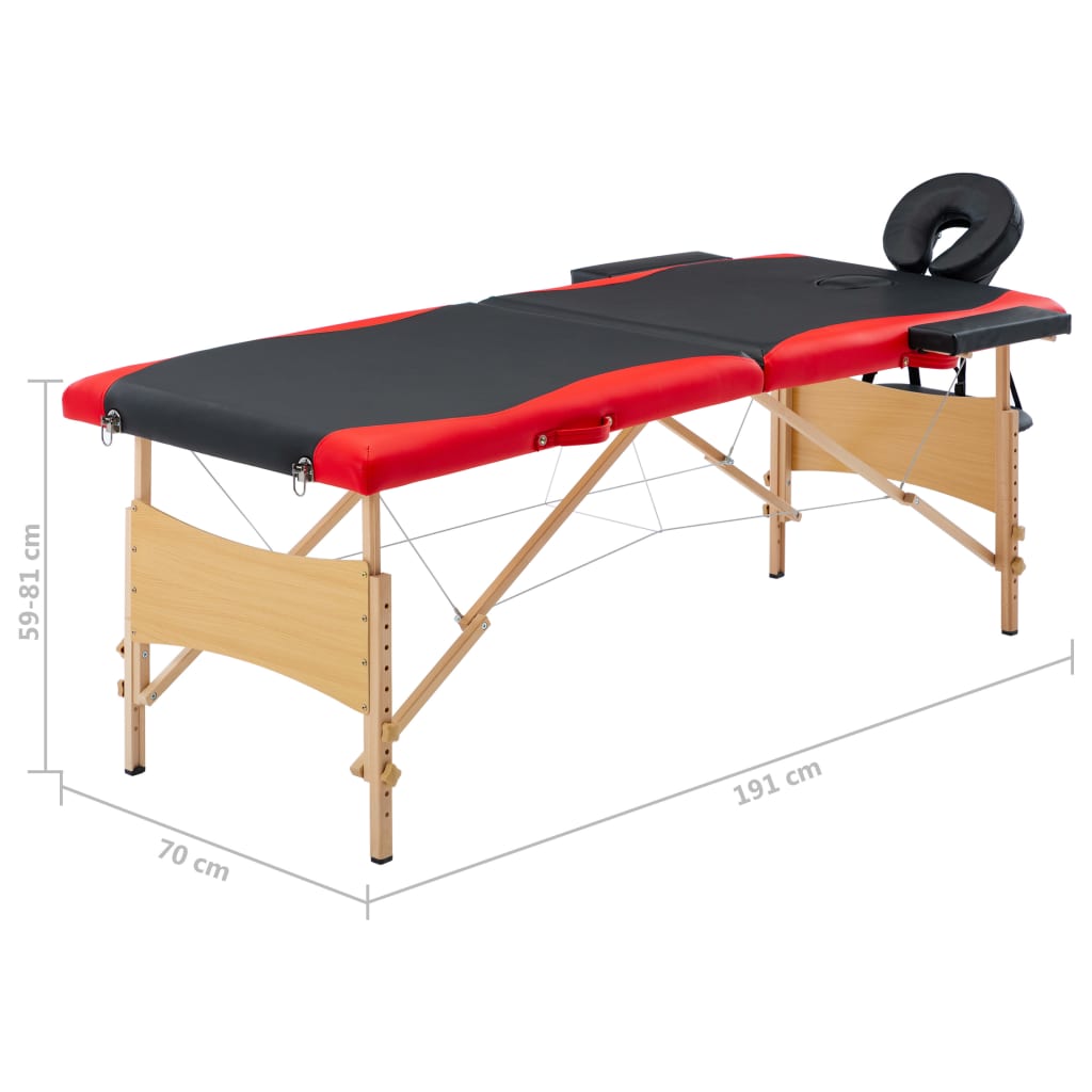 Lettino Massaggio Pieghevole a 2 Sezioni Legno Nero e Rosso 110206