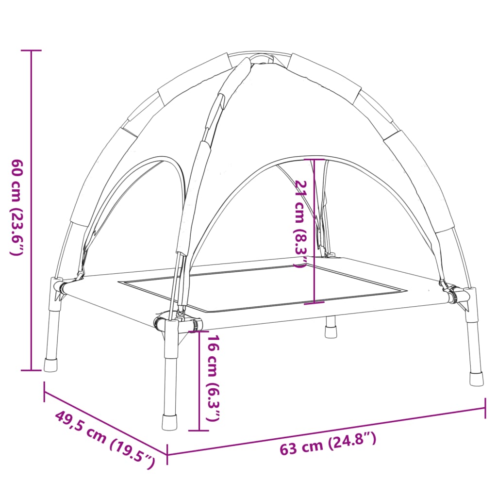 Lettino per Cani con Tetto Tessuto Oxford Antracite e Acciaio 172596