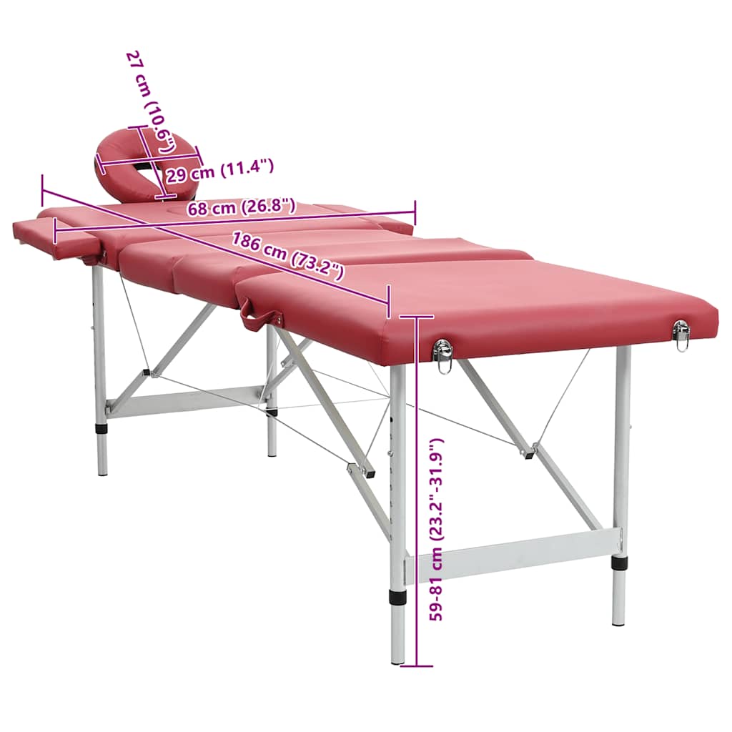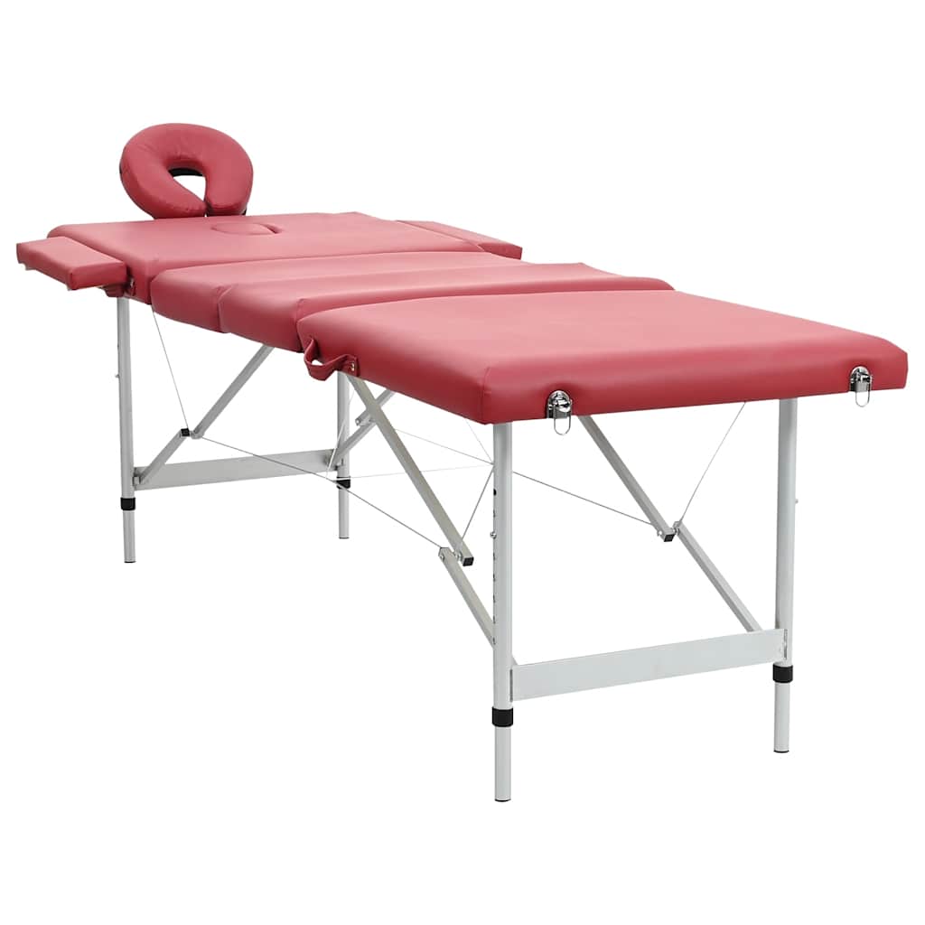 Lettino Pieghevole da Massaggio Rosso 4 Zone Telaio Alluminio 110098