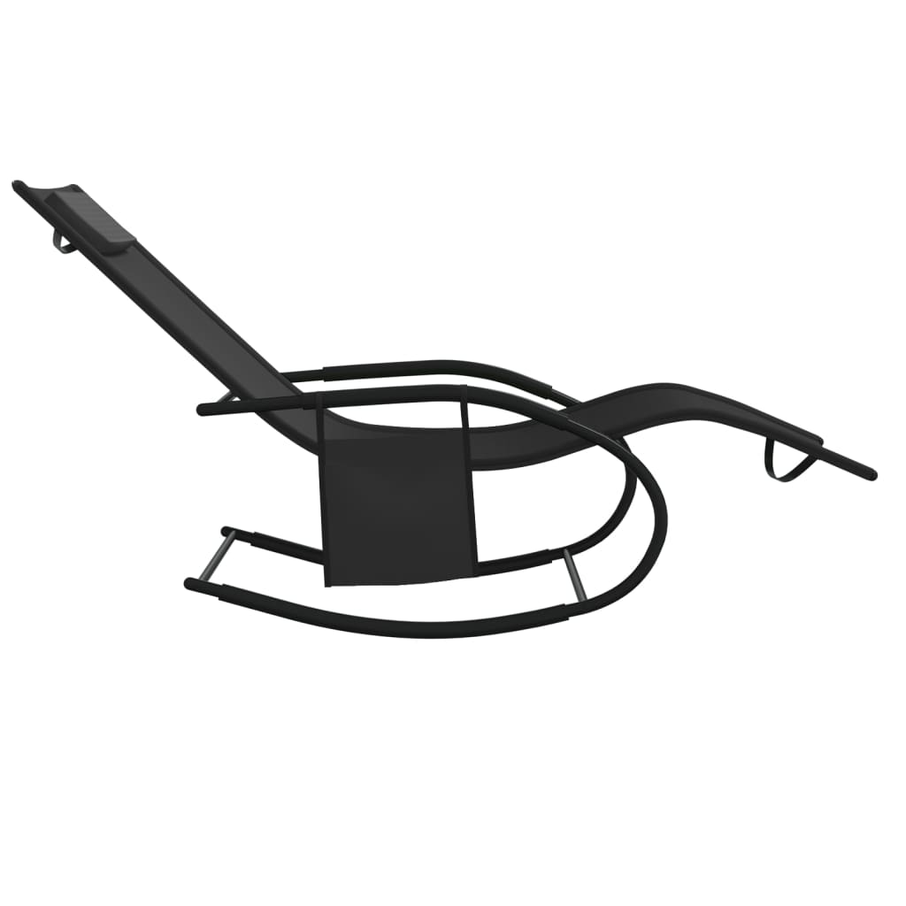 Lettino Prendisole a Dondolo in Acciaio e Textilene Nero 318120