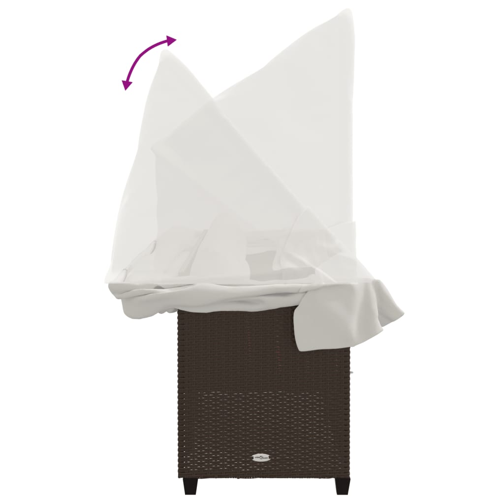 Lettino Prendisole con Baldacchino e Cuscini Marrone Polyrattan 368336