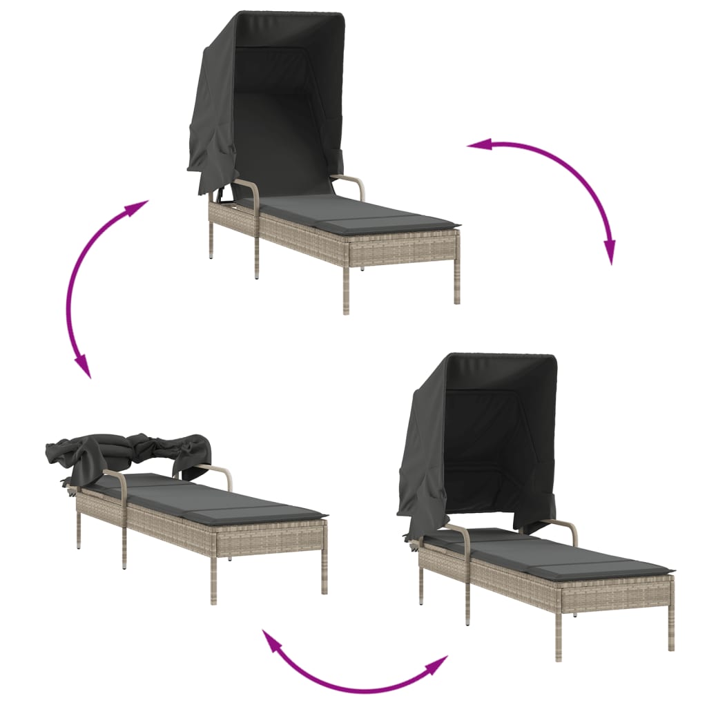 Lettino Prendisole con Baldacchino Grigio Chiaro in Polyrattan 368193