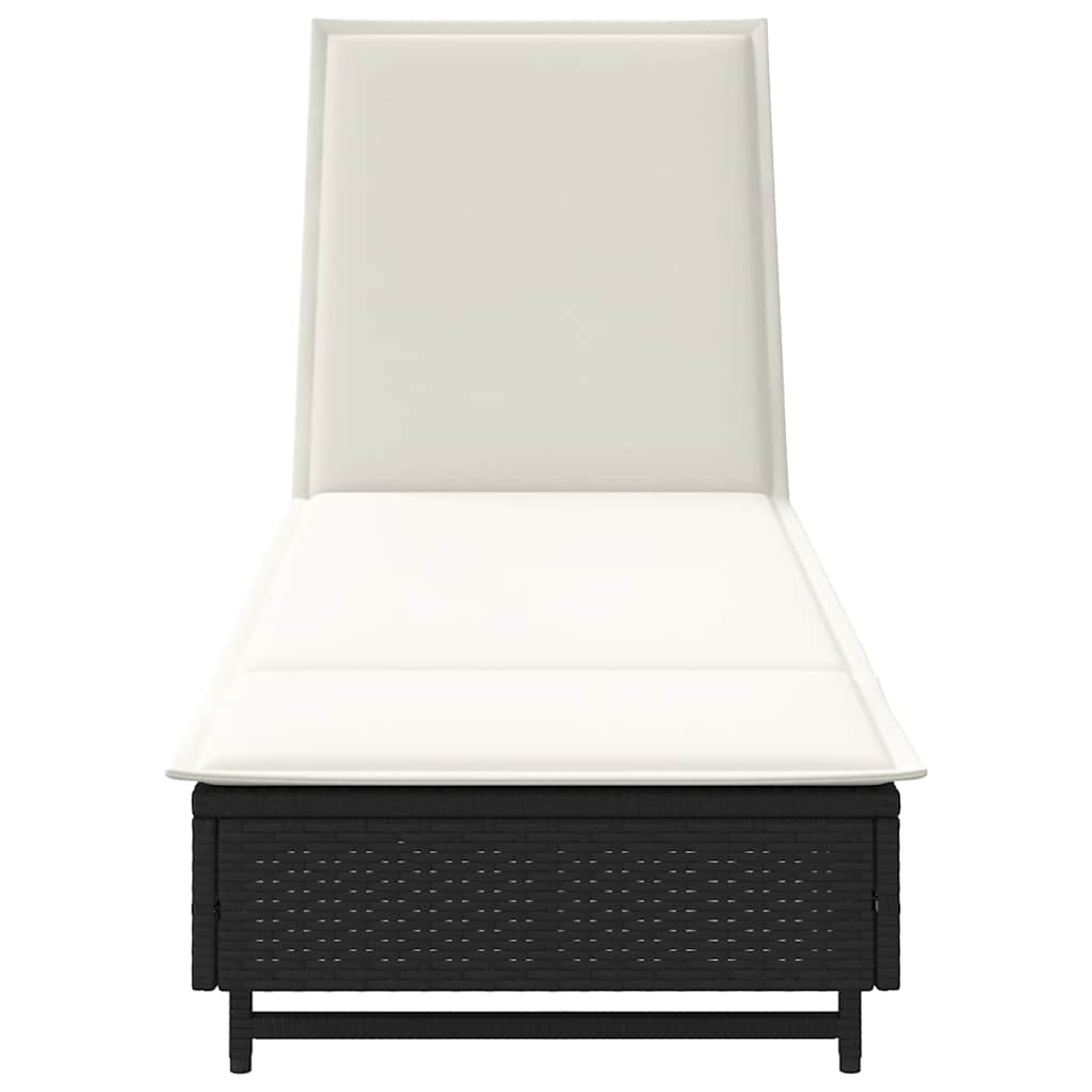 Lettino Prendisole con Ruote e Cuscino in Polyrattan Nero 4104033
