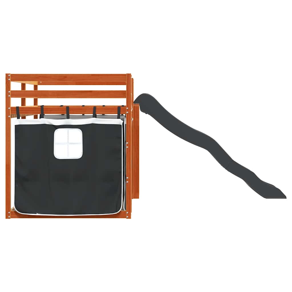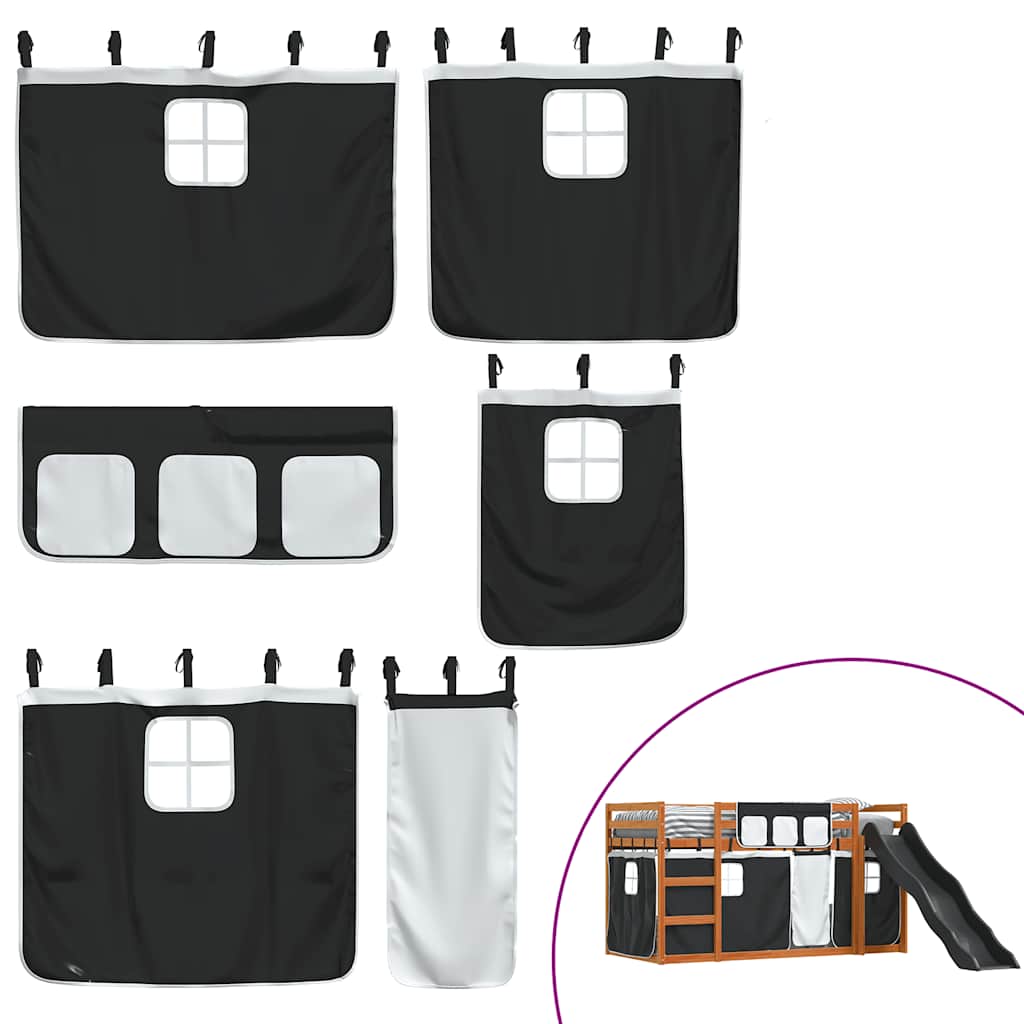 Letto a Castello con Scivolo e Tende Bianco e Nero 80x200 cm 3284122