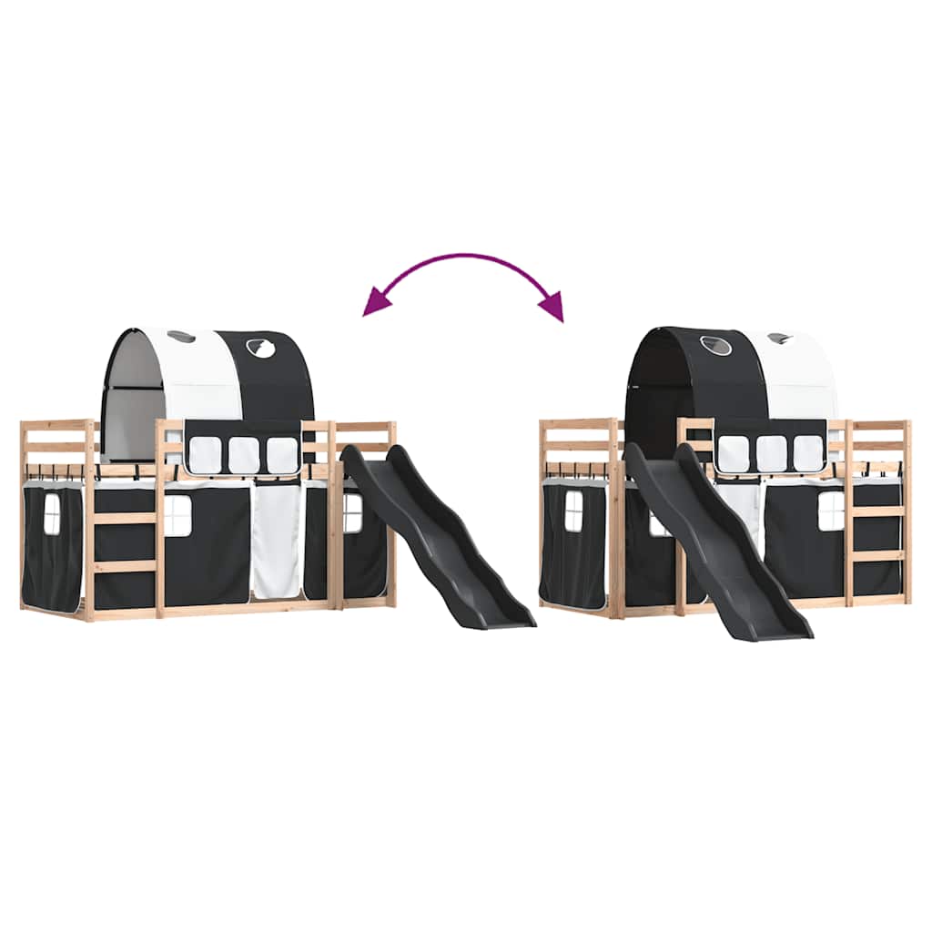 Letto a Castello con Scivolo e Tende Bianco e Nero 80x200 cm 3284143