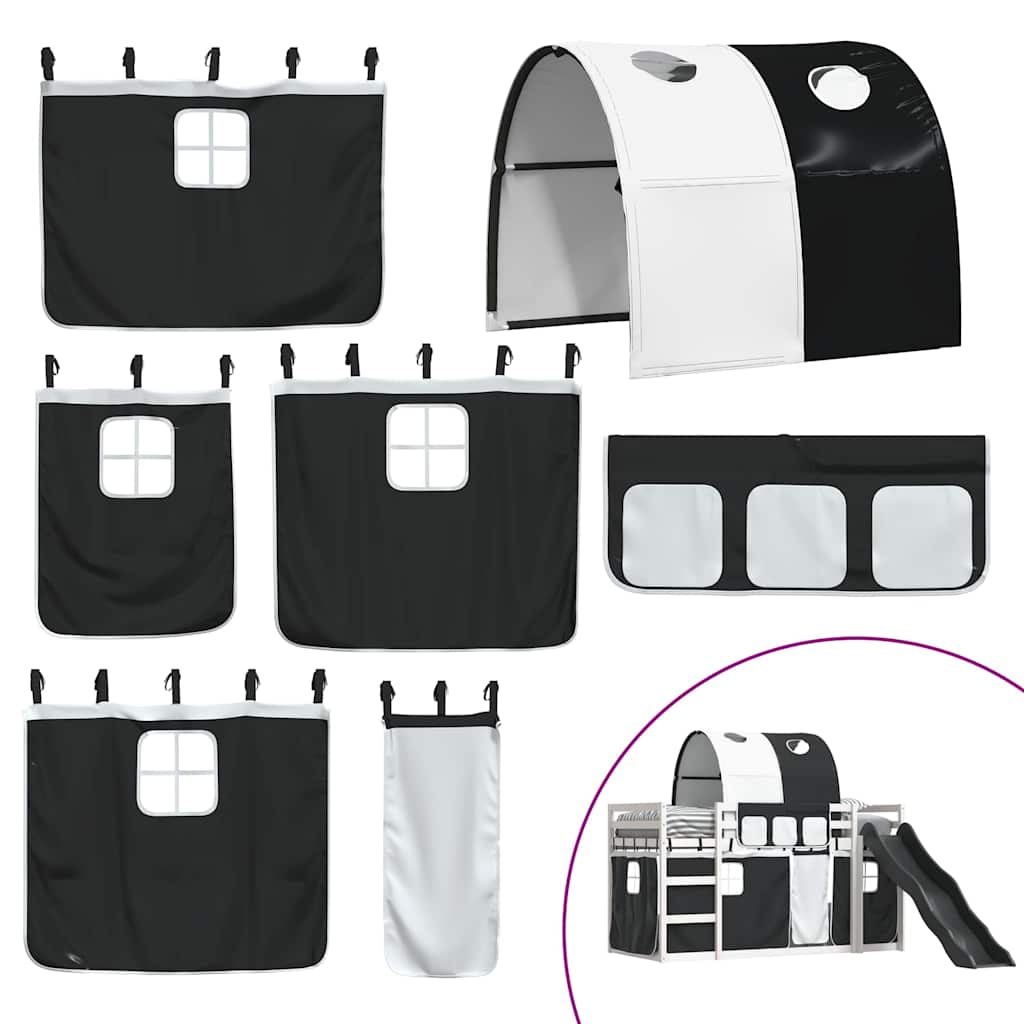Letto a Castello con Scivolo e Tende Bianco e Nero 80x200 cm 3284146