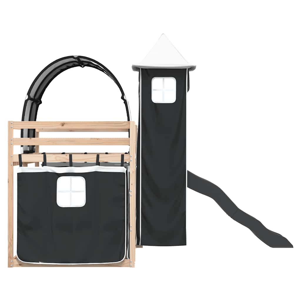 Letto a Castello con Scivolo e Tende Bianco e Nero 80x200 cm 3284170
