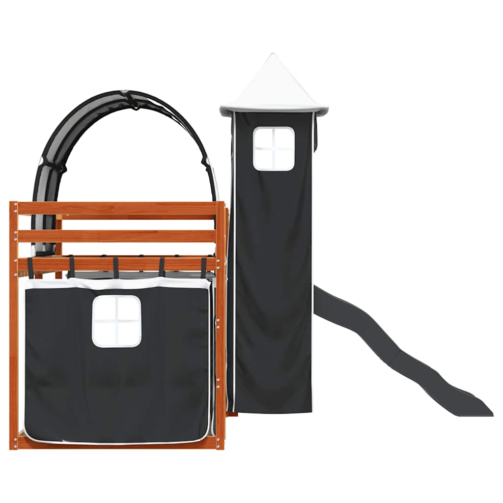 Letto a Castello con Scivolo e Tende Bianco e Nero 80x200 cm 3284185
