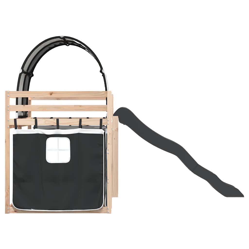Letto a Castello con Scivolo e Tende Bianco e Nero 90x200 cm 3284134