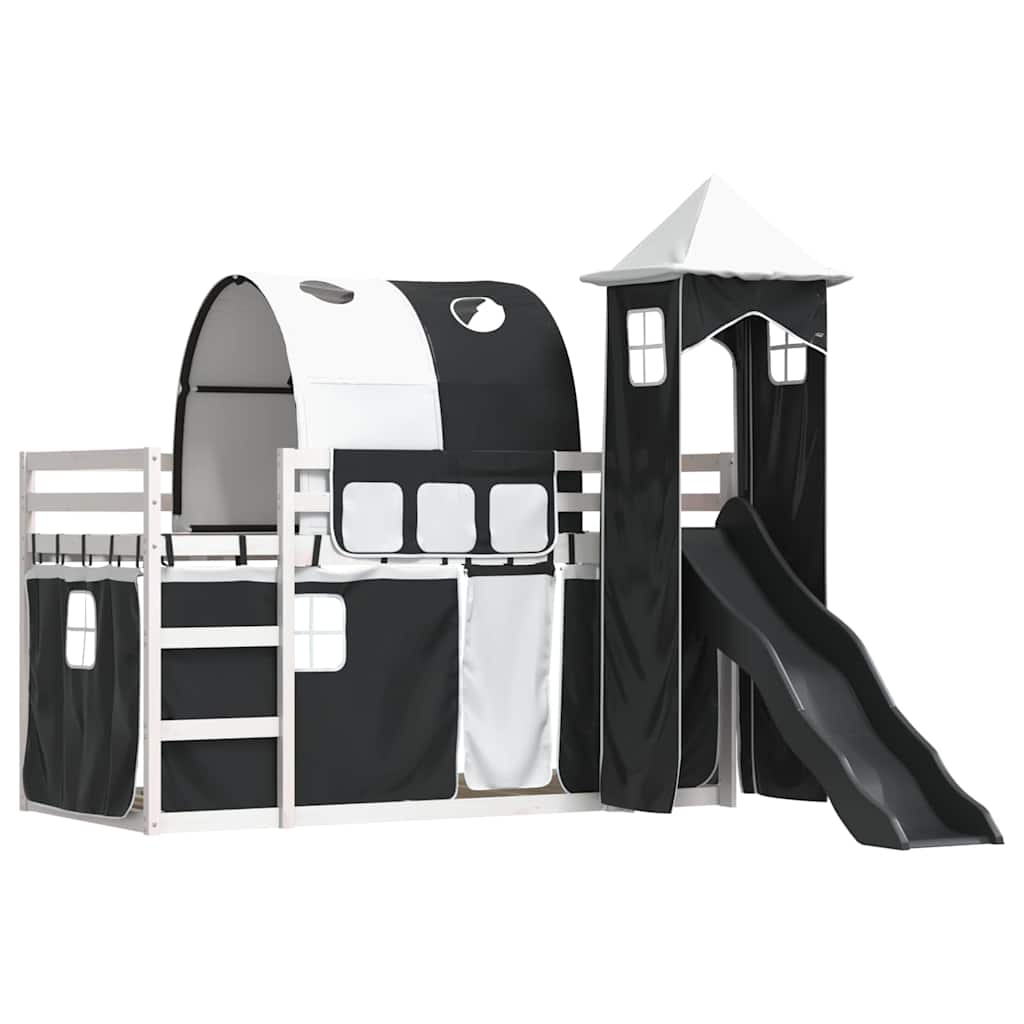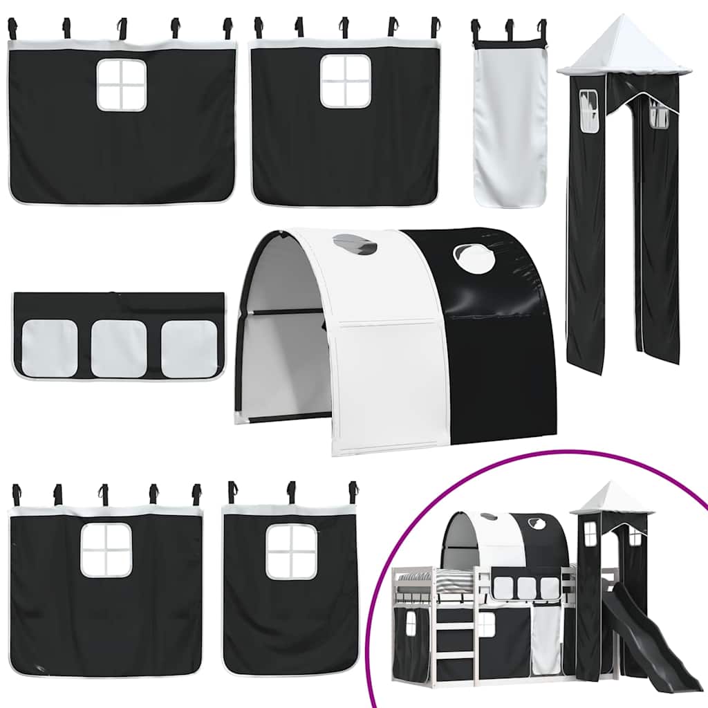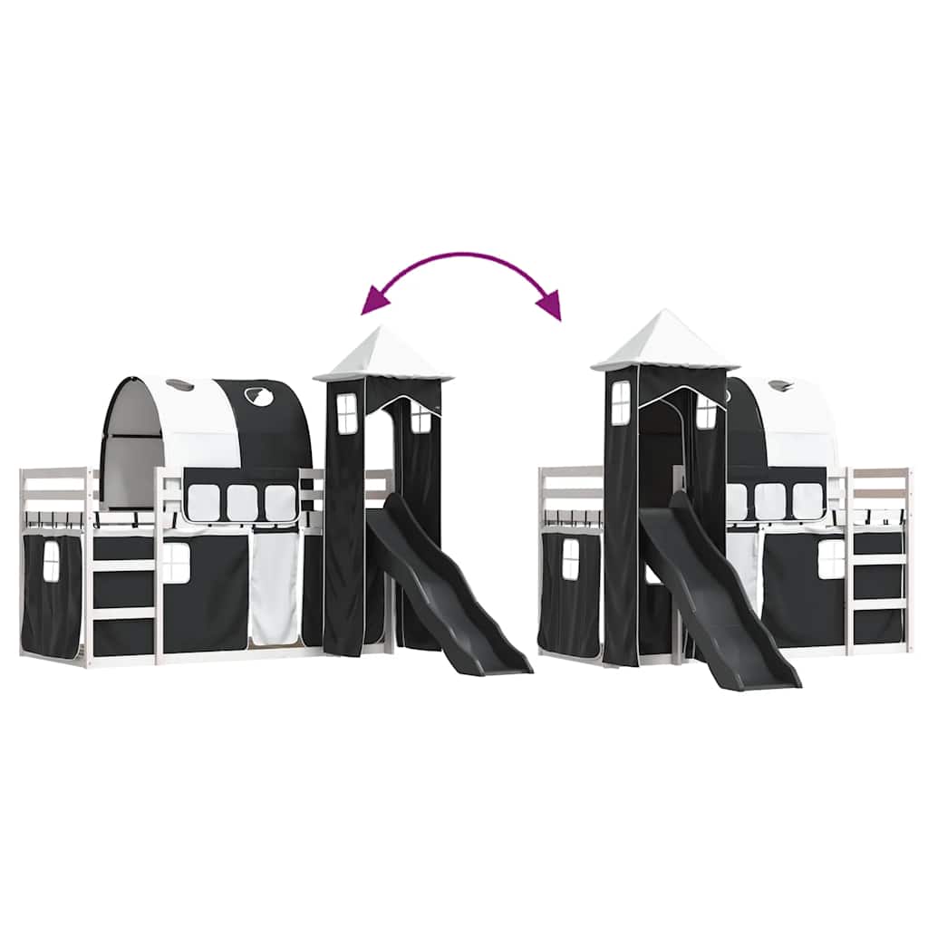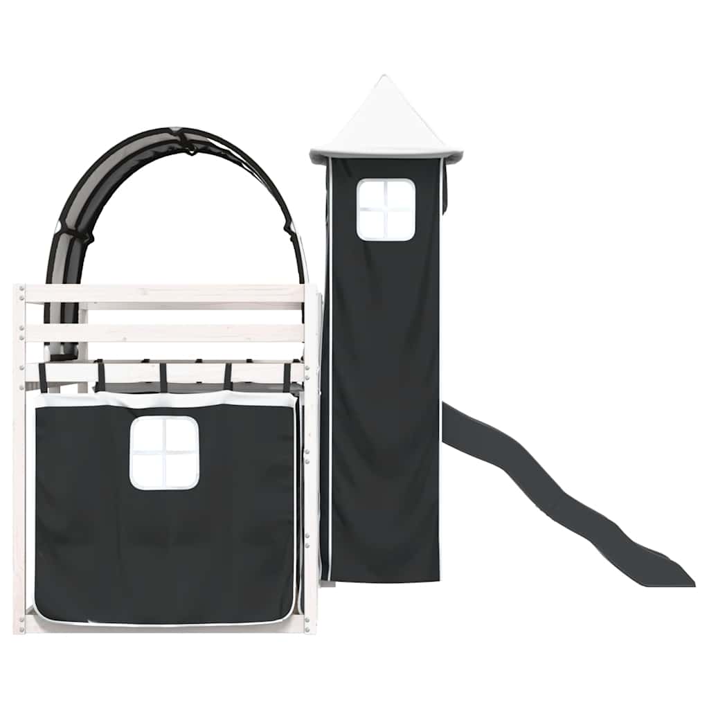 Letto a Castello con Scivolo e Tende Bianco e Nero 90x200 cm 3284164