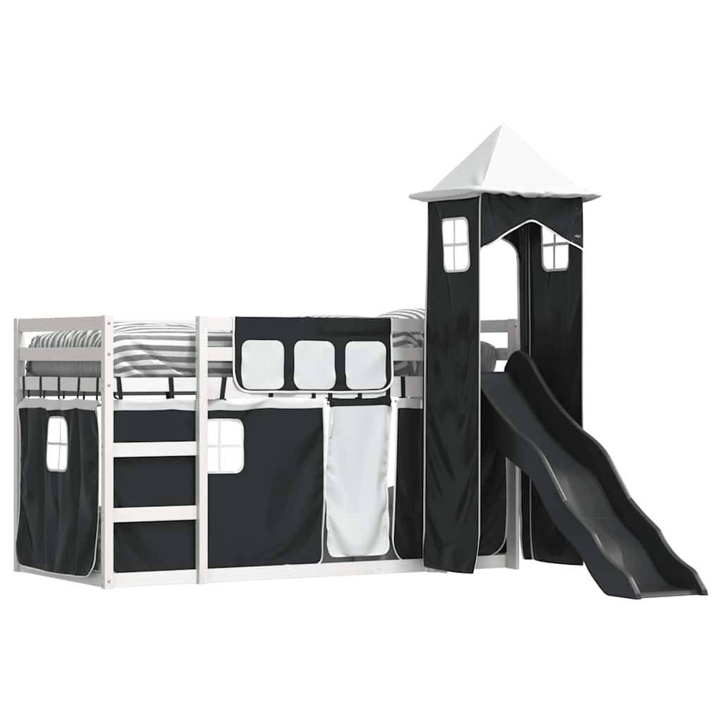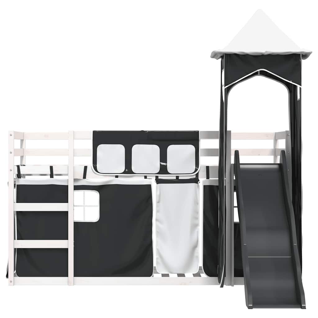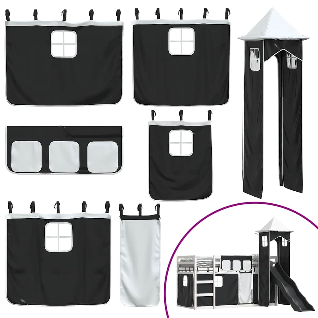 Letto a Castello con Scivolo e Tende Bianco e Nero 90x200 cm 3284191