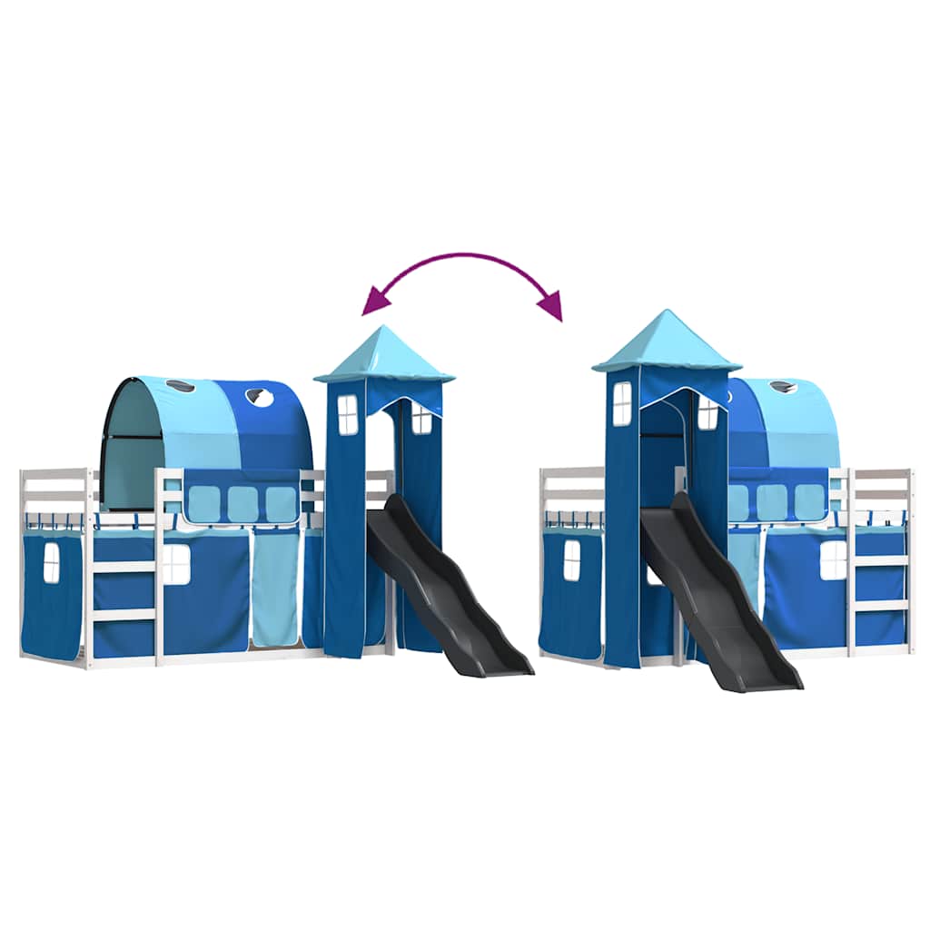 Letto a Castello con Scivolo e Tende Blu 90x190 cm 3284183