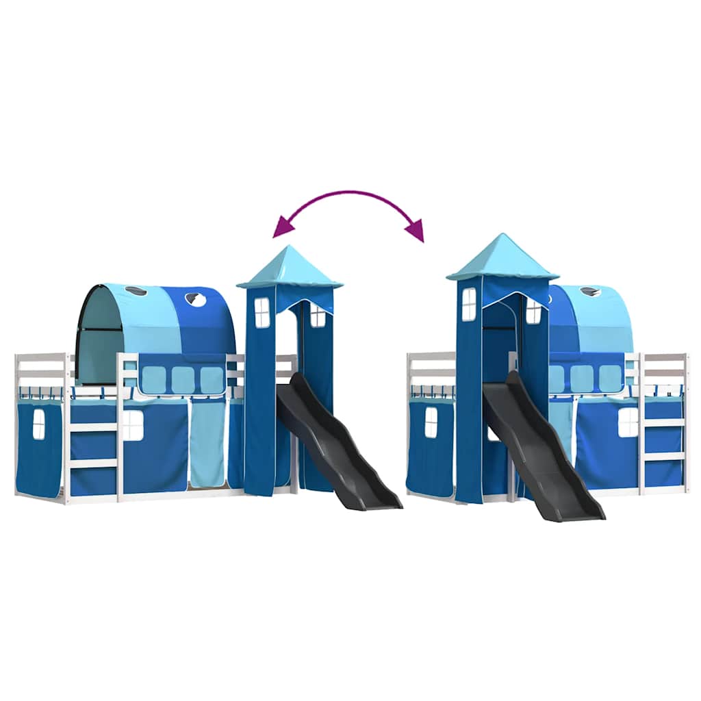 Letto a Castello con Scivolo e Tende Blu 90x200 cm 3284165