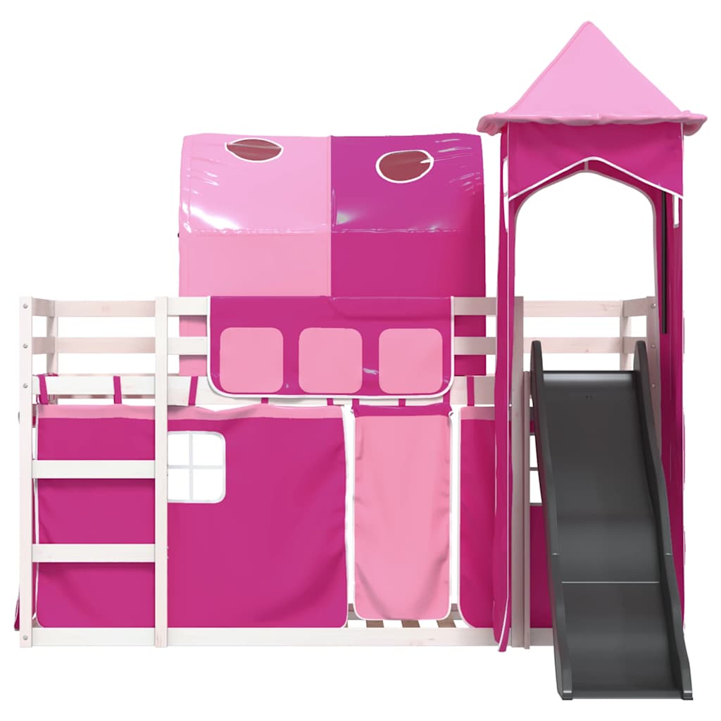 Letto a Castello con Scivolo e Tende Rosa 80x200 cm 3284175