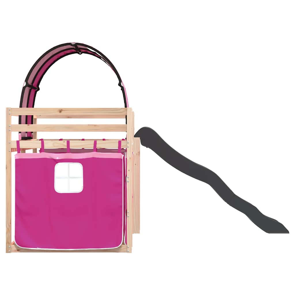 Letto a Castello con Scivolo e Tende Rosa 90x190 cm 3284154