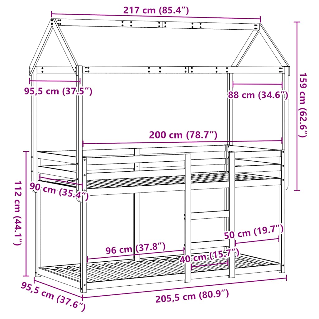 Letto a Castello con Tetto Bianco 90x200 cm in Legno di Pino 3282117