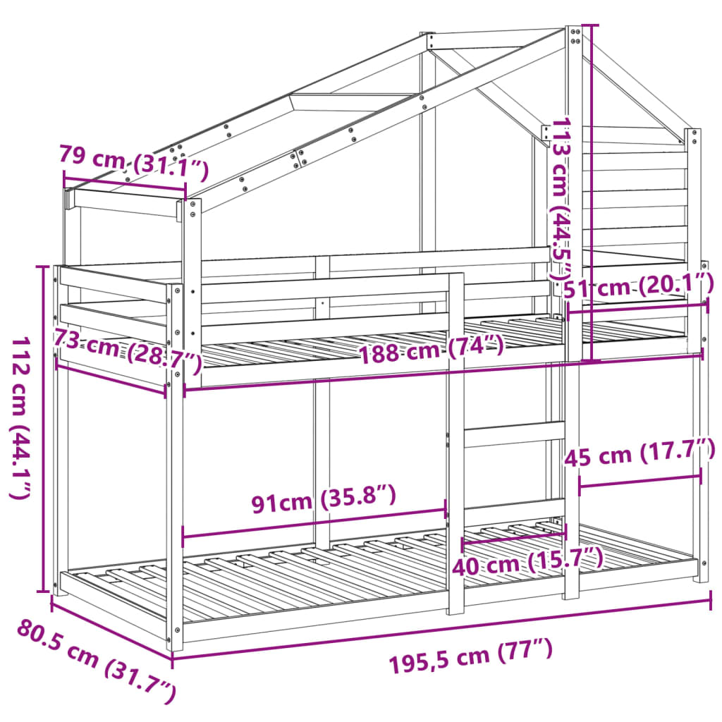 Letto a Castello con Tetto Marrone Cera 75x190 cm Massello Pino 3281969