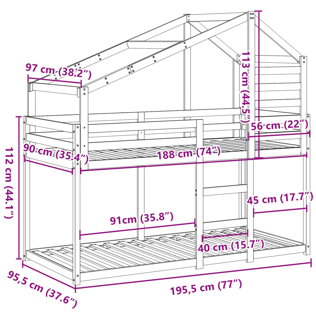 Questo letto a castello per bambini in legno con tetto è elegante e funzionale, il che lo rende un complemento perfetto per qualsiasi stanza con spazio limitato.