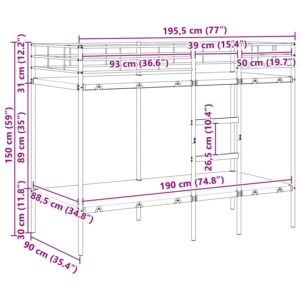 Letto a Castello senza Materasso Nero 90x190 cm in Acciaio 42000321