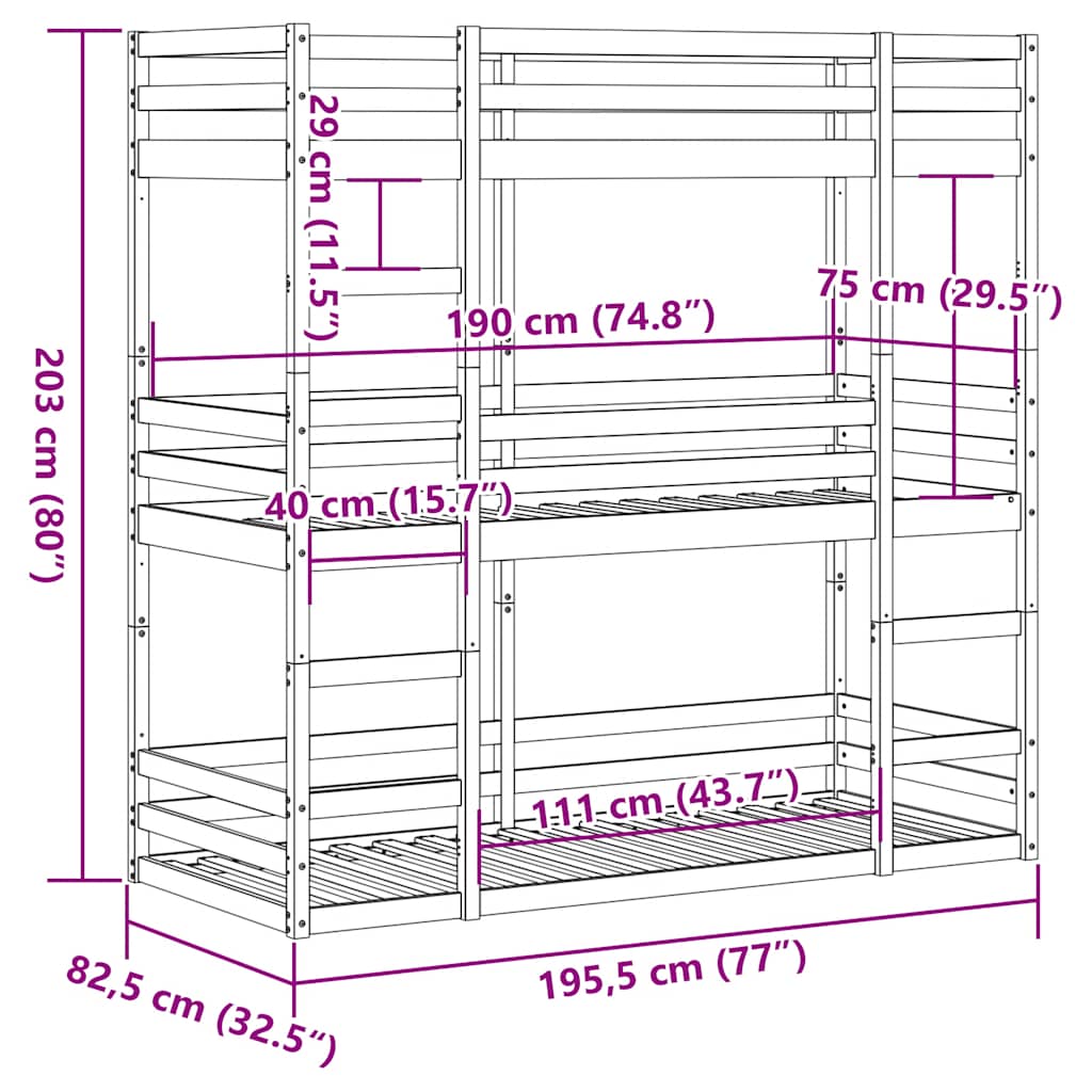 Letto a Castello Triplo 75x190 cm in Legno Massello di Pino 3284260
