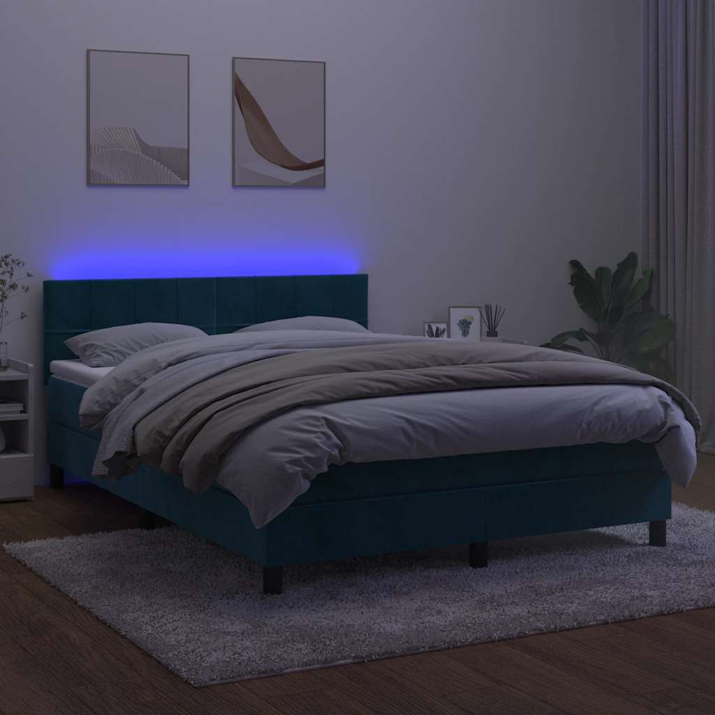 Letto a Molle con Materasso e LED Blu Scuro 140x200 cm 3134409