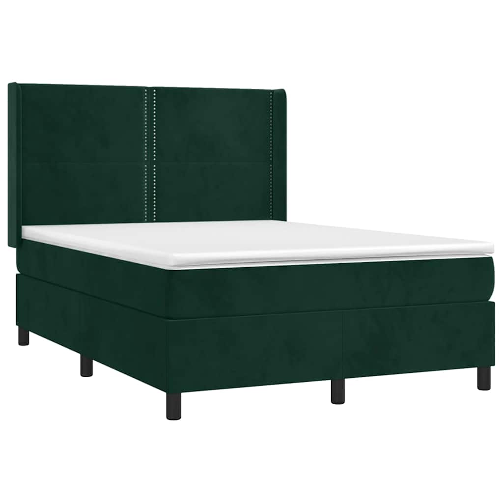 Letto a Molle con Materasso e LED Verde Scuro 140x200cm Velluto 3139508