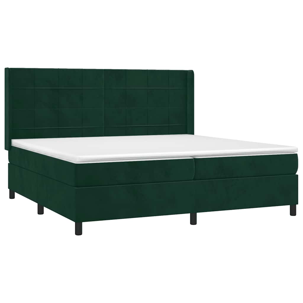 Letto a Molle con Materasso e LED Verde Scuro 200x200cm Velluto 3139586